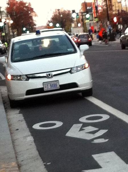 The site MyBikeLane is a sort of user-generated catalog of pictures of bike lane misuse in cities all over the world. In the photo above, for example, a parking enforcement officer has completely blocked the bike lane.